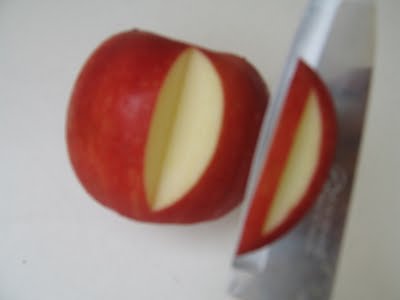 Step 1: Cách cắt táo. Đầu tiên cắt miếng chữ V nhỏ nhỏ trên trái táo