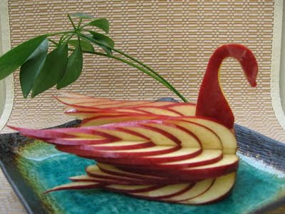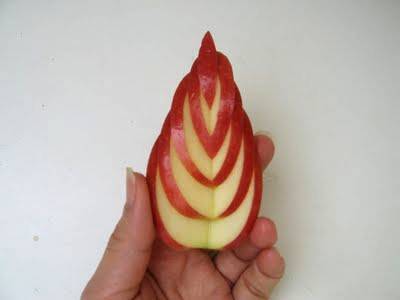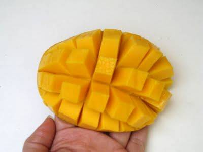 Step 3: Lật miếng xoài ra. Có ngay 1 cái "bông" xoài! Táo