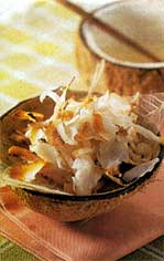 2. Dùng dao sắc hoặc cưa nhỏ cắt trái dừa ra làm 2 phần. 3. Nạo cơm dừa rồi xào khô với một chút đường, bảo quản trong tủ lạnh. 4. Khi dùng, đổ nước dừa ra phần trái dưới, phần nắp trên để bầy cơm dừa. Thanh Long Cách 1: