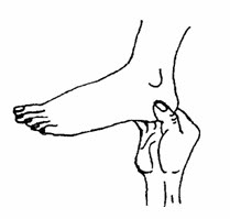 Để tăng lực hoạt động cho thận, bàng quang và sinh thực tuyến: Nắm chặt lấy gân gót chân và bấm mạnh, (tương đương các huyệt Côn lôn, Bộc tham của kinh Bàng quang, Chiếu hải, Thái khê của kinh Thận), ở đây mà thấy đau đều tương ứng với rối loạn ở thận, bàng quang, bộ phận sinh dục. Nhiều người thấy có dấu hiệu khoái cảm cao độ ở điểm này mà không rõ lý do tại sao. Dùng lòng bàn tay cụp vào gót chân (phía lòng bàn chân) bóp mạnh và sâu vào. Nếu ở đây thấy đau là sinh thực tuyến bị yếu. Ngược lại ấn vào điểm này sẽ tăng cường lực cho sinh thực tuyến. Điểm này cũng làm hết đau lưng và giữ một vai trò trong việc làm cho đầu gối hết cứng.