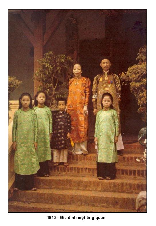 * 1828 Vua Minh Mệnh xuống chiếu bắt phụ nữ bỏ váy mặc quần, đã làm đề tài cho bốn câu thỏ giễu cợt ai cũng biết : Tháng tám có chiếu vua ra : * Michel Đức Chaigneau là con lai, mẹ người Việt, cha là một trong hai người Pháp làm quan với nhà Nguyễn thời Gia Long, Minh Mệnh. Sinh trưởng ở Phú Xuân, Chaigneau Đức viết trong Souvenirs de Huê khá tỉ mỉ về y phục phụ nữ "Vợ những người buôn bán hay công chức nhỏ thì mặc một áo vải ngắn, mầu đen hay chocolat, quần lụa đen hay vải trắng. Dân chúng, thợ thuyền giới hạ lưu, đàn ông như đàn bà, ăn mặc rât tồi tệ. Đàn ông chỉ đánh một cái quần vải trắng hay mầu cháo lòng, dài tới đầu gối, buộc ngang lưng bằng một cái giải rút dài, buông thõng hai đầu ở trước bụng... Có người mặc áo vải ngắn mầu trắng hay nâu, thường là rách rưới, vá víu, dài chưa tới đầu gối, để lộ ống chân rám nắng. Phụ nữ ăn mặc cũng tựa như thế, chỉ khác áo dài hơn, ống tay áo rộng, quần và nón rộng hơn. Từng lớp trưởng giả sang trọng thì mặc áo mớ đôi bằng tơ lụa trông suốt qua được, quần lụa đến bụng chân". * Thái Đình Lan (1801-1859), người Đài Loan, năm 1835 đi thi Hương rồi về bằng đường thủy, gập bão tố, trôi dạt tới Quảng Ngãi, năm sau mới theo đường bộ trờ về. Đi từ mùa thu năm trước đến mùa hè năm sau mới về đến Phúc Kiến, qua 14 tỉnh nước An Nam như Phú Xuân, Nghệ An, Thanh Hóa, Thường Tín, Lạng Sơn, Thái Bình... qua Trung quốc rồi mới về được quê nhà. Ông viết quyển Hải Nam Tạp Trứ, ghi chép những điều mắt thấy tai nghe ở nước Nam. Về y phục ông cho biết : tr 171 :"Có hai quan chức đến áp mạn thuyền chúng tôi (để kiểm tra). Họ đều chít khăn lụa đen, mặc áo tay hẹp, quần lụa điều, đi chân trần (các quan Việt Nam đi đâu đều đi chân đất), áo mặc không phân biệt nóng lạnh, ngay giữa mùa đông cũng mặc áo quần lụa mỏng. Người quyền quý phần nhiều dùng hai mầu xanh lam và đen ; khăn chít đầu cũng thế, quần thì đều mặc quần lụa điều". tr 243 :"Đàn bà ra ngoài buôn bán, để búi tó, chân đất, dùng vải đũi vấn quanh đầu, đội nón bằng đấu, mặc áo lụa đỏ thẫm, ống tay áo hẹp, áo dài chấm đất, không mặc váy, không thoa son phấn, tay đeo chuỗi ngọc, hạt mã não hoặc vòng đồng". * Áo giao lĩnh - Chưa rõ xuất hiện từ bao giờ, tôi tạm xếp vào thế kỷ 19 vì được coi là "xưa nhất", đã ra đời trước áo tứ thân, tuy không ai đưa ra bằng chứng cụ thể. Áo giao lĩnh giống áo tứ thân, chỉ khác hai vạt đằng trước buông thõng, giao nhau chứ không buộc vào nhau ở trước bụng. Có lẽ người ta thấy áo giao lĩnh "lụng thụng", bất tiện cho người làm việc lao động nên đoán sau đó mới chế ra kiểu áo tứ thân gọn ghẽ hơn. * Áo tứ thân - Là kiểu áo có bốn thân, hai thân của vạt sau nối sống theo chiều dọc, hai thân đằng trước buộc vào nhau ở trước bụng, để hở cho thấy yếm bên trong. Thắt lưng các mầu tươi thắm như hồng đào, hồ thủy, hoàng yến, xanh nõn chuối, lá mạ... luồn dưới vạt sau, buộc múi trước bụng rồi thả xuống. Cái thắt lưng này có thể là cái "ruột tượng" hay "hầu bao" hình cái ống dài, ngoài tác dung trang trí và giữ áo cho khỏi lòe xòe còn dùng để đựng tiền, bằng cách thắt một nút rồi đút tiền vào, lại thắt một nút khác để giữ cho tiền khỏi tuột ra, buộc vào lưng thì không sợ tiền rơi hay bị kẻ cắp.