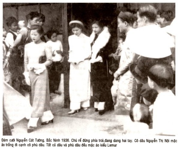 1- Cổ áo : Cổ bẻ ra theo kiểu tây phương, góc nhọn thì gọi là "cổ lưỡi dao", tròn gọi là "cổ bánh bẻ", cổ khoét hình quả tim, buộc giây..., đều mở ở giữa ngực, duy cổ lọ vai bồng mở ở vai bên phải, gài khuy từ cổ tới vai. Hồi nhỏ, khoảng đầu thập niên '40, tôi đã từng mặc áo cổ lọ vai bồng bằng len đỏ, khuy nhựa của Tây, hình vuông cùng mầu đỏ như áo . 2- Khuy áo bằng nhựa của Tây, hình vuông, tròn, bầu dục... và có hoa nổi hay chìm, đủ các mầu để chọn tùy theo mầu áo. Loại khuy bằng vải tết lại như Trung quốc không dùng nữa nhưng tôi đã từng mặc áo loại khuy này, gài hay tháo rất khó vì vải rít chặt chứ không trơn như khuy nhựa. Khuy nhựa sau bị thay thế khoảng thập niên '50 bằng khuy giả ngọc trai do bà Lê thị Lựu vẽ kiểu. 3- Tay áo - Ông Cát Tường nhận xét là tay áo cổ truyền chật hẹp rất bất tiện mỗi khi co tay, và không hợp với khí hậu nóng bức...Tuy nhiên ông có vẽ một kiểu áo dạ hội tay cắt ngắn ở khoảng giữa cánh tay rồi đeo bao tay (gants) dài đến tận giữa cánh tay. Có người khen là trông "rất sang trọng". Với tư cách là người mặc áo dài tôi cảm thấy thay thế cái tay áo dài bằng cặp gants dài còn nóng bức và bất tiện hơn. 4- Thân áo - Ông Cát Tường cho áo cổ truyền lụng thụng quá, cần phải ôm sát thân người mặc áo thì mới đẹp. Song quần áo không phải chỉ có mục đích che mưa nắng, nóng lạnh và có mỹ thuật như ông nói. Thời xưa, nó còn để che thân, người phụ nữ không được để thân thể lộ liễu cho người ngoài nhìn thấy. Chị cả tôi còn phải nịt ngực, lấy vải quấn quanh ngực mấy vòng, ép xuống cho ngực phẳng lì. Bà Bùi thị Xuân, khi bị Gia Long giam trong ngục trước khi đem hành hình, đã nhờ người mua lụa trắng quấn hết chân tay để khi bị tử hình (voi tung) thân thể có mỗi nơi một mảnh cũng khg bị bộc lộ ( Lemonnier de la Bissachère). Trên thực tế, áo Lemur chỉ ôm hờ thân người mặc chứ không ôm sát, cứ xem ảnh cưới của chính ông Lemur (1936) cũng thấy rõ cả cô dâu lẫn các cô phù dâu đều mặc áo Lemur nhg nó không ôm sát thực sự như áo dài ngày nay, mà chỉ bớt lụng thụng nhờ cắt lượn theo thân hình chứ xếp nếp (plis) không sâu, có khi không có cả plis nữa. Năm 1952, tôi và các bạn vẫn còn mặc áo không chiết plis. Có thể vì ông Cát Tường chỉ vẽ kiểu yếm chứ chưa nghĩ đến vẽ soutien (có người dịch là "nịt ngực" e không đúng vì "nịt" có nghĩa là nén ép xuống trong khi soutien nâng ngực cho cao lên). Từ áo Lemur đến áo dài hiện đại có một khoảng xa cách không kém gì từ áo dài lụng thụng tới áo Lemur. 5- Viền tà - Tà áo cổ truyền phải mất 3 đường khâu và một cái nẹp dài để viền tà cho cứng cát, vạt áo sẽ đứng chứ không cong queo. Ông Cát Tường tung ra lối viền tròn như con giun bằng một thứ hàng và mầu khác hẳn mầu áo, giống kiểu viền quần áo ngủ pyjamas, đỡ tốn công hơn và lạ mắt. Mầu viền tà cũng như mầu khuy giống nhau. Tôi cũng có một chiếc áo mầu vàng chanh, hàng Bombay mỏng và mịn, khuy nhựa hình bầu dục và viền tà cùng mầu xanh lá cây. Áo dài Lemur rất được hoan nghênh, thậm chí có cô (?) Phan thị Nga ở Hội An ca tụng không tiếc lời :" Kiểu quần áo Cát Tường đã làm cho chị em thêm diễm lệ ở nét mặt..." (Ngày Nay, số 13, 1935) tôi bội phục trí tưởng tượng của cô. Chắc là khi "thoa son dồi phấn" kiểu Cát Tường cô sẽ thấy thân hình chị em nở nang, "có những đường cong tuyệt mỹ" hơn ? * Áo Lê Phổ - Áo Lemur tuy được hoan nghênh nhưng cũng bị chê là "lai căng". Theo Wikipedia thì ông Lê Phổ, cũng năm 1934, "đã sửa bớt những nét lai căng, đưa thêm các yếu tố dân tộc từ áo tứ thân, ngũ thân vào, tạo ra một kiểu áo vạt dài cổ kính, ôm sát thân người, trong khi hai vạt dưới được tự do bay lượn, dung hợp hài hòa. Áo dài đã tìm được hình hài chuẩn mực của nó". Như vậy có nghĩa là hai vạt dưới của áo Lemur không được tự do bay lượn ? Nếu không phải thế thì khác ở chỗ nào ? Tôi thấy ảnh cưới ông Cát Tường, rõ ràng hai tà áo phụ nữ đều "tự do bay lượn". Theo Hoàng Huy Giang thì Lê Phổ "bỏ đi những nét Tây phương như không tay, tay phồng, cổ hở, không viền tròn vạt dài v.v... Nhưng đến đầu thập niên '40, chính tôi còn mặc áo cổ lọ vai bồng và tà áo viền tròn. Tóm lại, tôi vẫn chưa rõ sự khác biệt giữa áo Lemur và áo Lê Phổ, chỉ biết gọi theo mọi người là "áo tân thời". Mốt năm 1952, khi tôi sang Pháp, là áo rộng và ngắn đến đầu gối nhưng ngực vẫn xẹp. Mãi khoảng giữa thập niên '50, mới có cô ca sĩ từ Saigon sang Pháp, lên sân khấu mặc áo dài thực sự ôm sát người, ngực nở nhờ có đeo soutien nâng cao lên và áo chiết plis sâu nên bụng thon. Chúng tôi đều suýt soa là đẹp và... bạo ! III - TỪ ÁO LEMUR ĐẾN ÁO DÀI HIỆN ĐẠI (Sau đây phần lớn tôi chép theo người khác vì sống ở Pháp). * Áo dài kiểu bà Nhu tức bà Trần Lệ Xuân, vợ ông Ngô Đì