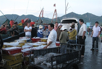 Cho tàu cập cảng từ lúc 5 giờ sáng, mua sạch các loại cá tôm trong vùng mới nhổ neo