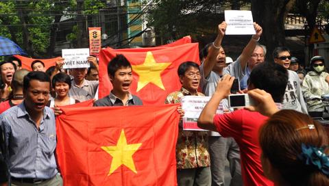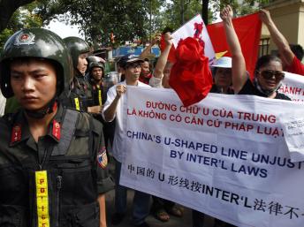 Những người biểu tình tố cáo Trung Quốc vi phạm lãnh hải Việt Nam và quấy nhiễu ngư dân Việt.