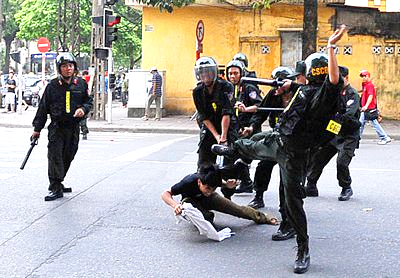 Cảnh Sát Cơ Ðộng ở Hải Phòng tiếp tục đánh, đá một thanh niên đến bất tỉnh dù người này đã ngã xuống. Hơn chục người đã bị công an CSVN đánh chết khi bị tra tấn đánh đập, thời gian gần đây, dù luật pháp của chế độ nghiêm cấm và có các điều luật hình sự trừng phạt hẳn hoi. Nhưng đến nay, tất cả đều bị cho chìm xuồng. (Hình: TTVNOL) Ðã có rất nhiều ý kiến, bài viết, những cuộc hội thảo của các nhà giáo, nhà tâm lý, nhà nghiên cứu văn hóa, xã hội... về sự xuống cấp trong giáo dục, đạo đức học đường. Nhiều ý kiến cũng đã chỉ thẳng nguyên nhân, gốc rễ của vấn đề, đó là từ sự xuống cấp đạo đức nói chung trong một môi trường xã hội có quá nhiều cái sai trái như ở Việt Nam hiện nay, mà muốn sửa chữa thì phải sửa... cả hệ thống, bởi vì như cách nói của một số người, là thuộc về “lỗi hệ thống” mất rồi! Dần dần, những câu chuyện kiểu như vậy hay thậm chí tồi tệ hơn, cũng sẽ không còn làm cho mọi người sốc, choáng nữa, mà sẽ mặc nhiên chấp nhận và sống chung với nó như đã và đang sống chung với nạn tham nhũng và rất nhiều vấn nạn khác trong xã hội! Ngày Quốc Tế Nhân Quyền và nhân quyền cho Việt Nam Ngày 10 tháng 12 năm nay có hai sự kiện vẫn diễn ra hàng năm trên thế giới nhưng ít nhiều liên quan đến Việt Nam. Thứ nhất là lễ trao giải Nobel Hòa Bình 2010 cuối cùng vẫn diễn ra tại Oslo, Na Uy mặc cho người được giải là ông Lưu Hiểu Ba đã không thể có mặt, cũng không ai có thể thay ông đi nhận, và mặc cho sức ép nặng nề từ phía chính quyền Trung Quốc chung quanh sự kiện này. Báo chí nước ngoài thi nhau đưa tin về một hình ảnh vô cùng ấn tượng “Giải Nobel Hòa Bình được đặt lên một chiếc ghế trống”! Nếu sự kiện giải Nobel Hòa Bình năm nay được trao cho một nhân vật bất đồng chính kiến người Trung Quốc cũng là niềm vui chung và niềm hy vọng cho những người đấu tranh dân chủ ở Việt Nam vốn có một hoàn cảnh tương tự, thì việc Việt Nam nằm trong danh sách 18 quốc gia, không tính Trung Quốc, không có mặt tại buổi lễ như một hình thức ngấm ngầm ủng hộ hoặc sợ mất lòng Trung Quốc là một nỗi nhục cho người Việt Nam dù ai cũng thừa biết, Hà Nội không bao giờ dám chọc giận Bắc Kinh trong một vụ việc như vậy. Bởi khi nhìn lại danh sách những quốc gia không có mặt thì hầu hết đều bị xếp vào loại độc tài, hoặc chưa được thế giới xếp hạng cao về thành tích tự do, dân chủ, nhân quyền, và vẫn là thiểu số (19 trên tổng số 65 quốc gia được mời), trái ngược với tuyên bố của Trung Quốc rằng phần lớn các nước đã ủng hộ lời kêu gọi của Bắc Kinh đòi tẩy chay lễ trao giải. Thậm chí trong buổi họp báo thường kỳ ở Bắc Kinh ngày 7 tháng 12, Phát Ngôn Viên Bộ Ngoại Giao Trung Quốc Khương Du còn nói thêm rằng hơn 100 quốc gia ủng hộ lập trường của Trung Quốc. Ðiều này cho thấy, dù hiện đã là cường quốc kinh tế thứ hai trên thế giới và đã dùng hết sức mạnh kinh tế, ảnh hưởng về ngoại giao lẫn các biện pháp hù dọa khác nhau, Trung Quốc vẫn chưa có đủ uy tín để “nói gì thế giới cũng nghe”, mơ gì đến vai trò bá chủ hoàn cầu, lãnh đạo thế giới! Tương lai có thuộc về Trung Quốc hay không chưa biết, nhưng có một điều chắc chắn rằng, các quốc gia chọn lựa con đường tự do dân chủ luôn luôn chiếm số đông và ngày càng đông hơn. Việt Nam không lẽ cứ mãi chọn cho mình con đường đứng về phe thiểu số? Ngày 10 tháng 12 hàng năm cũng là ngày Quốc Tế Nhân Quyền. Như thường lệ, vào ngày này, các tổ chức nhân quyền và nhân dân các nước, đặc biệt tại các quốc gia độc tài, quân phiệt, tìm cách nói lên những vi phạm nhân quyền trong quốc gia mình để kêu gọi thế giới lưu tâm. Cộng đồng người Việt tỵ nạn tại nhiều quốc gia như Mỹ, Pháp, Ðức, Úc, Na Uy, v.v. cũng nhân dịp này biểu tình phản đối sự chà đạp nhân quyền trắng trợn vẫn còn diễn ra tại Việt Nam, đồng thời kêu gọi quốc tế làm áp lực đảng Cộng Sản Việt Nam; còn ngay tại Việt Nam, Bác Sĩ Nguyễn Ðan Quế, một nhà hoạt động dân chủ từng ngồi tù nhiều năm đã lên tiếng kêu gọi mọi người ký tên vào “Bản Lên Tiếng Chung của Những Người Việt Nam Yêu Nước Nhân Ngày Kỷ Niệm 62 Năm Công Bố Tuyên Ngôn Nhân Quyền của Liên Hiệp Quốc”. Nhiều người trong và ngoài nước đã nhiệt tình hưởng ứng lời kêu gọi này. Trong khi đó, đại sứ Mỹ ở Hà Nội, ông Michael Michalak đã lên tiếng tố cáo chính phủ Việt Nam gia tăng kiểm soát Intenet, tấn công những trang mạng chỉ trích chính quyền, bắt bớ những người bất đồng chính kiến... trong 2 năm qua, với trên 24 người bị bắt và 14 người bị kết án chỉ vì “đã bày tỏ quan điểm của mình một cách ôn hòa.” Như thường lệ, Việt Nam chắc chắn sẽ lại bác bỏ, cho rằng những chỉ trích này là thiếu cơ sở hoặc thiếu khách quan. Nhưng sự 