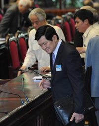 Quanh quẩn mãi giữa vài ba dáng điệu. Tới hay lui vẫn chừng ấy mặt người... Hồi thời tiền chiến, qua bài Quanh Quẩn, nhà thơ Huy Cận đã bày tỏ tâm trạng của mình rằng: Quanh quẩn mãi giữa vài ba dáng điệu. Tới hay lui vẫn chừng ấy mặt người... Tâm trạng “Đời nhạt tẻ như tàu không đổi chuyến” ấy của nhà thơ Huy Cận hồi thời đó không biết có làm cho người đời nay trong nước liên tưởng đến những khuôn mặt cũ tiếp tục nằm ở vị trí lãnh đạo đất nước VN hay không. Ban chấp hành mới Hôm 16 tháng 12 vừa rồi, mạng Dow Jones cho biết Ban chấp hành Trung ương Đảng CSVN ủng hộ ông Nguyễn Tấn Dũng thêm một nhiệm kỳ thủ tướng nữa, ủng hộ ông Trương Tấn Sang, Thường trực Ban Bí thư Trung ương, sẽ giữ chức chủ tịch nước, ông Phạm Quang Nghị, bí thư Thành Uỷ Hà Nội, sẽ giữ chức Chủ tịch Quốc Hội, và nhất là tiến cử đương kim chủ tịch Quốc Hội Nguyễn Phú Trọng lên giữ chức tổng bí thư đảng. Theo Bùi Tín Blog thì ông Nguyễn Phú Trọng, 67 tuổi, được ủng hộ vào chức vụ quyền lực nhất nước này là do ý của TQ, cho dù 1 hội nghị của Bộ chính trị quyết định những nhân vật từ 66 tuổi trở lên sẽ không được ở lại trong Bộ chính trị. Blogger Bùi Tín cho biết thêm: "Đây là khung lãnh đạo mà Hội nghị Trung ương lần thứ 14 bàn bạc định đưa ra Đại hội đảng lần thứ 11 sắp sửa nhóm họp vào ngày 12 tháng giêng sắp tới. Vị trí quan trọng nhất người ta giằng co nhau là vị trí Tổng bí thư Đảng. Vị trí này đã được bỏ phiếu thăm dò từ Hội nghị Trung ương lần thứ 12, rồi 13, mà vẫn chưa ngã ngũ. Trong hội nghị trung ương lần thứ 13 hồi tháng trước, người ta có ý kiến rằng Tổng bí thư có thể là ông Nguyễn Phú Trọng. Nhưng người ta thấy ông Nguyễn Phú Trọng cao tuổi rồi, tức 67 tuổi, nên họ định đưa ông Trương Tấn Sang lên. Nhưng khi thăm dò thì thấy ông Trương Tấn Sang không được đa số hậu thuẫn, dẫn tới ý kiến cho rằng có thể ông Phạm Quang Nghị hay Hồ Đức Việt được chọn. Nhưng những ông này đều không được quá bán ủng hộ. Nên đến Hội nghị Trung ương 14 này, người ta mới quay lại với ông Nguyễn Phú Trọng. “Chọn ông Nguyễn Phú Trọng thì trong nội bộ đảng, người ta không vui lòng lắm vì ông này vừa cao tuổi lại vừa hết sức bảo thủ. Blogger Bùi TínTin từ Hà Nội rò rỉ ra ngoài cho biết là sở dĩ ông Nguyễn Phú Trọng được “chấm” vào chức Tổng Bí thư là vì sau khi có sự ủng hộ ông Nguyễn Tấn Dũng vào chức vụ chóp bu này, nhưng Bắc Kinh lại “mặn mà” hơn với ông Nguyễn Phú Trọng. Do đó sự lựa chọn người làm Tổng bí thư đảng CSVN là sự lựa chọn từ Bắc Kinh, mặc dù ông Trọng quá cao tuổi và hội nghị Bộ chính trị có quyết định người nào từ 66 tuổi trở lên sẽ không được ở lại Bộ chính trị. Chọn ông Nguyễn Phú Trọng thì trong nội bộ đảng, người ta không vui lòng lắm vì ông này vừa cao tuổi lại vừa hết sức bảo thủ." Blogger Bùi tín nhân tiện cho biết thêm về khuynh hướng bảo thủ kiên định của nhân vật có triển vọng nắm giữ chức vụ chóp bu của VN. "Người ta đặt tên ông Nguyễn Phú Trọng là ông “Trọng Lú” khi ông ta còn là Bí thư Thành Uỷ Hà Nội. Nhưng sau này người ta gọi ông ấy là ông “4 kiên định”, tức kiên định chủ nghĩa Mác-Lênin, kiên định chủ nghĩa xã hội, kiên định chế độ độc đảng và kiên định kinh tế quốc doanh làm chủ đạo. Về 4 kiên định này, thì 22 nhà trí thức đảng viên hàng đầu đã bác bỏ toàn bộ 4 kiên định đó. Theo họ thì cần phải bác bỏ hẳn chủ nghĩa Mắc-Lênin vốn đã phá sản và lỗi thời rồi. Cần phải gạt bỏ chủ nghĩa xã hội. Nhiều người cũng cho rằng chế độ độc đảng bây giờ, khi hội nhập với thế giới, thì riêng VN cùng một số nước như Cuba, TQ, Lybia, Sudan…bị xếp vào các nước độc đoán, không có dân chủ. Cho nên vấn đề là phải thực hiện chế độ dân chủ đa nguyên. Do đó người ta bác cả 4 kiên định của ông Nguyễn Phú Trọng. Nhưng ông Nguyễn Phú Trọng sắp làm Tổng bí thư, chủ trương 4 kiên định đó vốn bị phá sản hoàn toàn rồi. Đó la lý do người ta thấy nhân vật Nguyễn Phú Trọng là chán nhất." Cơ chế chính trị Nhắc tới chức tổng bí thư đảng, blog Hoàng Quang phổ biến nguyện vọng của nhà văn Trần Kỳ Trung về việc bầu Tổng bí thư. Nhà văn Trần Kỳ Trung giả sử rằng nếu ông là đại biểu dự đại hội đảng và được phép bầu Tổng bí thư Đảng, thì ông “không cần đắn đo suy nghĩ, cứ trả lời ngay” rằng: "Điều đầu tiên, theo tôi, người ấy phải trẻ tầm khoảng trên bốn mươi tuổi như Tổng thống Mỹ, Thủ tướng Anh, Tổng thống Pháp, Tổng thống Nga… Tất nhiên, đã ở tuổi như vậy phải có sức khỏe… Có như vậy, khi có điều kiện, ông Tổng bí thư sẽ lội bộ xuống thăm những nơi bị lụt, bị hạn, thậm chí cả nơi đang bị phá rừng…chỉ đạo trực tiế