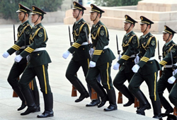 Quân đội Giải phóng nhân dân Trung Quốc bước lên Đại lễ đường Nhân dân ở Bắc Kinh hôm 9/11/2010, chào mừng Thủ tướng Anh David Cameron. AFP photo Cũng chính vì lý do an ninh mà Hoa Kỳ có thể ra sức ngăn chận TQ trước khi Bắc Kinh thật sự trở thành siêu cường mang dòng máu bành trướng Hán Tộc. Theo các chuyên gia thì Hoa Kỳ và Trung Quốc hiện vẫn còn những tương đồng, cùng hưởng lợi từ công cuộc toàn cầu hoá, từ thị trường tự do nơi hai cường quốc này mua nguyên liệu và xuất cảng thành phẩm. Cả hai đều cần một thế giới ổn định để ngăn chận hiểm hoạ hạt nhân. Nhưng nói theo tờ The Economist, người ta sợ rằng tình trạng tranh chấp, xung khắc, bất tín nhiệm Mỹ-Trung, nếu dài lâu tới mức trầm trọng, có thể lâm vào tình trạng hữu nghị như Anh và Đức Quốc trước khi Thế Chiến Thứ Nhất xảy ra. Bài tựa đề “Sự Trỗi Dậy Của Trung Quốc và Con Đường Dẫn Tới Chiến Tranh” được tờ Asia Wall Street Journal đăng tải hồi tháng 8 vừa rồi có cảnh báo rằng sự đi lên của TQ có thể gây ra tình trạng cạnh tranh an ninh căng thẳng với Hoa Kỳ, dẫn tới nguy cơ rất lớn là chiến tranh giữa 2 cường quốc kinh tế nhất nhì thế giới này. Nhưng GS Nguyễn Mạnh Hùng khẳng định rằng chiến cuộc Mỹ-Trung, ít ra cũng trong giai đoạn này, sẽ không xảy ra, vì "TQ biết mình không phải là đối thủ của Hoa Kỳ". Trước tình trạng giằng co như vậy của hai siêu cường Mỹ-Trung, những quốc gia nằm trong vùng tranh giành ảnh hưởng như Việt Nam hẳn cần cảnh giác và khôn khéo để không bị rơi vào thế lệ thuộc bất lợi cho đất nước.