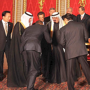 President Barack Obama bows to Saudi Arabia King Abdullah bin Abdul Aziz Al Saud