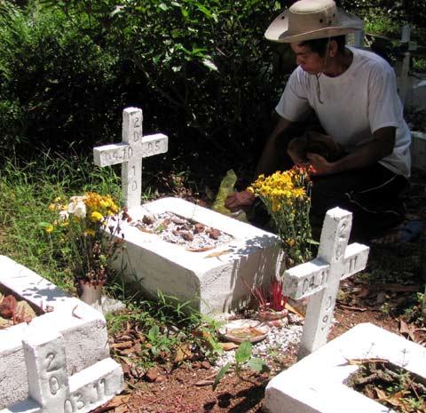 Anh Hiếu, anh Năng gắn bó cuộc đời mình với nghĩa trang từ ngày 2/2/1992 đến nay. Anh Năng cùng vợ con làm ruộng, chăm sóc 1,5ha rừng cây, đất vườn để mưu sinh. Công việc tất bật là vậy, nhưng khi có người mang xác hài nhi đến, anh gác lại hết và cùng anh Hiếu mang đi chôn. Khi bào thai quá nhiều, đất nghĩa trang có hạn nên các anh đã phát hoang đồi núi, san lấp để nghĩa trang được rộng ra. Người vợ cùng 6 đứa con cũng phụ giúp cha chăm sóc nghĩa trang. “Tôi nguyện gắn bó suốt đời với nghĩa trang và con cháu tôi sau này cũng vậy” –anh Năng tâm nguyện. Ngoài việc dạy học, anh chăm sóc gần 1ha đất rừng và cây ăn quả trong vườn đểmưu sinh. Vợ anh là giáo viên cấp 1 ở xã nhà cũng hết lòng ủng hộ chồng công việc chăm sóc nghĩa trang. Ngày quần quật mưu sinh và chăm sóc cho những linh hồn xấu số, tối về, vợ chồng anh căng sức ra để chăm sóc đứa con gái 6 tuổi bịbệnh máu tan. Những năm đầu tiên, công việc gặp rất nhiều khó khăn, trắc trở. Lúc đó, các anh chỉ biết đi đò và đi bộ xuống thành phố. Có những đêm khuya, không có đò, các anh phải bơi sang sông để đưa những hài nhi về kịp an táng trước lúc trời sáng. “Lúc đó, chỉ nghĩ đến việc làm cách nào chôn xác các em càng sớm càng tốt kẻo xác bị ôi thiu và tâm hồn các em lạnh lẽo” – anh Hiếu chia sẻ.