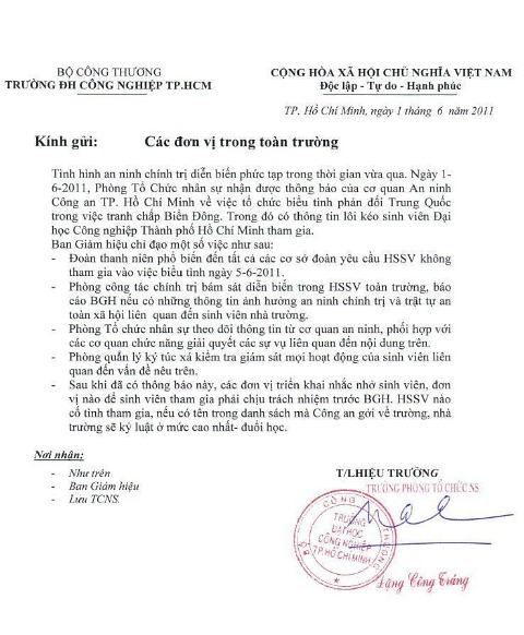 1. Sau đây là nội dung bản thông báo lấy lại từ blog của Anh Ba Sàm: