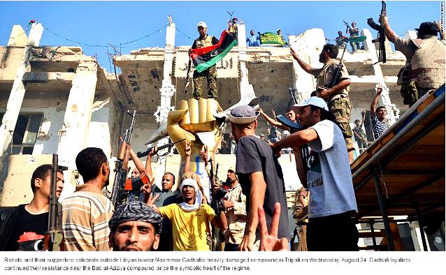 Chính quyền của Moammar Gaddafi vừa bị đánh bật khỏi thủ đô Tripoli của Libya.