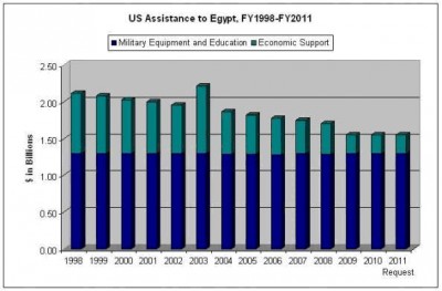 Trong khi đó, viện trợ kinh tế của Mỹ từ cuối thập niên 1990 lại bắt đầu giảm dần, mặc dù mức viện trợ quân sự thì hầu như không thay đổi từ đó cho đến nay, trung bình là 1.3 tỉ dollars. Ngoại trừ đỉnh cao là vào năm 2003 lúc mức viện trợ kinh tế của Mỹ cho Ai Cập lên đến gần 1 tỉ, những năm sau đó giảm đi nhiều và cho đến năm 2010 chỉ còn chừng 200 triệu dollars/ năm.[3]