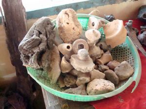 Một số cổ vật “nổi” lên từ lòng đất ở quanh miếu.
