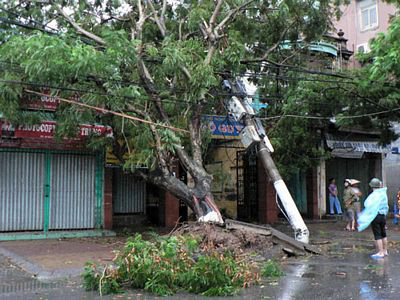 Mưa to đã làm gãy đổ cây và cột điện ở Hải Phòng. (Hình: Người Lao Ðộng) Hàng ngàn người ở các làng xã dọc biển ở Thái Bình và Hải Phòng đã được lệnh di tản vào các nơi an toàn, tuy nhiên một số người đã không chịu di dời, theo tin báo Người Lao Ðộng. Hải Phòng di tản khoảng 7,500 người trong khi Nam Ðịnh di tản khoảng 4 ngàn người. Riêng hai đảo Bạch Long Vĩ và Cát Hải thuộc tỉnh Hải Phòng đã bị cô lập hoàn toàn với đất liền. “Bạch Long Vĩ có nhiều nhà bị đổ, cây cối tung gốc la liệt. Huyện đảo này đã chuẩn bị sẵn lương thực, thực phẩm, thuốc men đủ dùng trong một tuần.” Báo Người Lao Ðộng tường thuật. Bão Conson khi thổi qua Phi Luật Tân đã làm cho ít nhất 39 người chết, theo tin tức mới nhất, chưa kể các thiệt hại vật chất. Phải ngưng 10 chuyến bay trong ngày Thứ Bảy đến và đi từ Hà Nội và Hải Phòng nhưng hãng hàng không Vietnam Airlines cho hay sẽ có thể nối lại các đường bay này vào ngày Chủ Nhật. |
