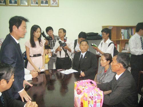 Nghị sĩ Han Sun Kyo (đứng) thay mặt người dân Hàn Quốc xin lỗi cha mẹ cô Thạch Thị Hoàng Ngọc (bên phải). Ảnh: NLĐ Trong khi đó từ phía nhà nước VN, người ta không thấy quan chức nào lên tiếng về chuyện này, ngoại trừ một vài câu của ông Nguyễn Tấn Dũng nói với Bộ trưởng Ngoại giao Hàn quốc tại Hà Nội vào ngày 23 tháng 7 nhân dịp hội nghị ASEAN mở rộng. Ông yêu cầu chính phủ Hàn quốc không được để tái diễn những trường hợp tương tự trong tương lai. Và thế là hết. Ông không có chỉ thị nào thêm cho các cơ quan Việt Nam. Báo đài lề phải trên toàn quốc cũng có đưa tin về vụ này, nhưng chủ yếu là trình bày sự kiện chứ không đào sâu vào nguyên nhân. Họ cho đăng một bản tin nói về việc một hội Cựu chiến binh Hàn quốc đến chia buồn và ủy lạo 15 ngàn mỹ kim cho gia đình nạn nhân ở Cần Thơ. Bên cạnh đó, lại đưa tin khá lớn về chuyện 8 cô dâu Việt Nam tại Hàn quốc đưa gia đình về thăm quê ngoại với sự hỗ trợ tài chánh của công ty ôtô GM Daewoo Vidamco. Đọc loạt báo này, người đọc hẳn nhiên có ấn tượng là rất nhiều cô dâu Việt Nam sống hạnh phúc bên người chồng Hàn quốc, và vụ cô dâu Thạch Thị Hồng Ngọc chỉ là trường hợp cá biệt. Cả làng báo lề phải không dám đi ngược lại chính sách xuất cảng cô dâu hiện nay của Nhà nước. Một chính sách vẫn đang cho phép các công ty môi giới tiếp tục cách sắp hàng vài chục thiếu nữ Việt lõa lồ để từng gã đàn ông nước ngoài “chọn vợ”. Phẩm giá và số phận của những “người vợ” này đã được định đoạt ngay tại kiểu cách mua bán nô lệ thời Trung Cổ này.