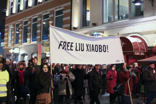 Ông còn nêu: “Hiến pháp của Trung Quốc bảo vệ các quyền cơ bản của con người. Điều 35 của hiến pháp để rằng: “Công dân của Cộng hòa Nhân dân Trung Hoa có quyền tự do ngôn luận, báo chí, hội họp và tự do hội họp, tự do biểu tình .” Điều 41 bắt đầu bằng:”công dân của Cộng hòa Nhân dân Trung Hoa có quyền chỉ trích và nêu quan điểm của họ trên bất kỳ cơ quan nhà nước và bất kỳ người đại diện chính phủ nào ” . Và dựa trên tất cả những điều này thì Lưu Hiểu Ba hoàn toàn vô tội. Ông không làm điều gì sai trái, chỉ xử dụng quyền công dân của mình mà thôi. Và ngược lại chính phủ Trung Quốc đang làm ngược lại những gì mình đã cam kết. Kết thúc bài phát biểu của mình, ông Jagland đặt huy chuơng và bằng danh dự vào chiếc ghế trống dành cho người thắng giải. Những tràng pháo tay vang dội cả trong lúc Jagland phát biểu và sau khi ông kết thúc. Tôi chưa từng được nghe bài phát biểu nào hay đến thế. Cả hội trường như cùng òa vỡ trong những tràng pháo tay không ngớt.