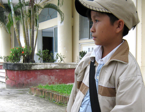 Trung nung nấu ước mơ lập một công ty tin học dành cho những người kém may mắn như mình. Ảnh: Văn Nguyễn. Bằng sự nỗ lực không ngừng, 12 năm học Trung luôn là học sinh khá, giỏi. Kỳ thi đại học vừa qua, cậu đậu trường cao đẳng và đại học ở Huế với điểm số khá cao. Trung chọn Khoa Tin học của ĐH Khoa học Huế vì nghĩ làm việc trên máy vi tính sẽ phù hợp với thể trạng của mình hơn. Vào đại học, một lần nữa Trung phải đối mặt với ánh mắt ngạc nhiên đổ dồn từ mọi phía. Tiết đầu mỗi môn học, cậu đều phải trải qua phần “kiểm tra” của các giảng viên. Tuy nhiên, dần dần bạn bè cũng đã tỏ ra yêu quý, sẵn sàng giúp đỡ “đứa em út” trong lớp. Trung bảo việc tiếp thu bài giảng với cậu không nặng nề bằng việc ghi chép bài vở. "Có những buổi học, em phải đứng mỏi nhừ cả chân mới chép kịp bài giảng do bàn ghế không phù hợp với em. Đêm về, đôi chân yếu ớt lại tê buốt, đau nhức", Trung kể. Tuy nhiên, chàng sinh viên tý hon luôn tự nhủ không được gục ngã, phải phấn đấu trở thành một lập trình viên, một nhân viên thiết kế phần mềm ứng dụng để khi ra trường có được công việc ổn định nuôi sống bản thân. “Em ước mơ một ngày sẽ mở được công ty tin học để tạo việc làm phù hợp cho những người khuyết tật, kém may mắn như em”, Trung tý hon nói về dự định tương lai. |