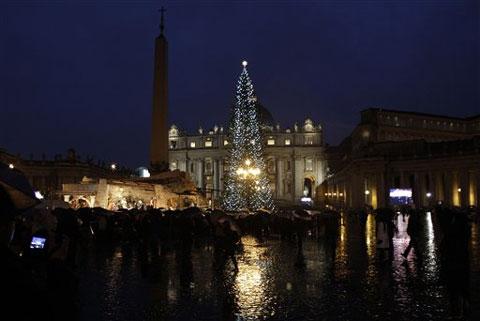 Trong thánh lễ Giáng Sinh tại đền thờ thánh Phero năm ngoái, một phụ nữ có đầu óc bất ổn đã nhảy qua hàng rào đẩy vị Giáo chủ ngã xuống đất trong lúc Ngài đang tiến lên bàn thờ để đọc Phúc Âm. Thánh lễ năm nay không có chuyện đáng tiếc nào xảy ra. (Ảnh: Các tín đồ tụ tập tại đền thờ thánh Phero ở Vatican tham dự thánh lễ Giáng Sinh ngày 24/12).
