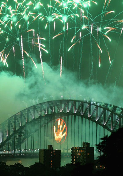 Thành phố Sdyney, Australia đánh dấu thời khắc năm 2010 đi qua bằng màn bắn pháo hoa truyền thống trên những địa điểm nổi tiếng, trong đó có nhà hát Con sò, Cầu Vịnh Sydney. Màn bắn pháo ở Trung tâm nghệ thuật tại Melbourne, Australia.