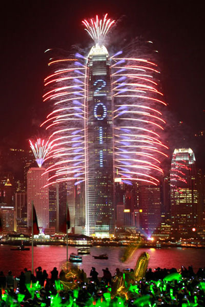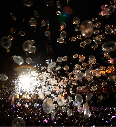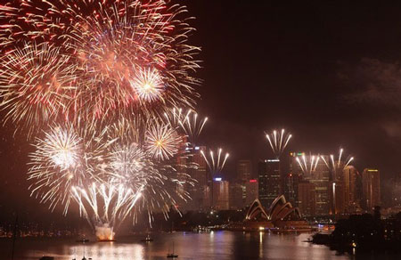 Tại Sydney, Australia, người dân đón năm mới với màn trình diễn pháo hoa được coi là lớn nhất và hiện đại nhất thế giới. Khoảng 1,5 triệu người đã mang chăn mềm, lều bạt cắm trại dọc Vịnh Sydney từ trước đó hơn 12 tiếng để được chiêm ngưỡng màn bắn pháo hoa "ngốn" mất 7 tấn pháo. “Chúng tôi biết các bữa tiệc năm mới ở quê nhà lớn như thế nào, nhưng Sydney mới có bữa tiệc lớn hơn, tuyệt vời hơn bất kỳ nơi nào”, Marcio Motta, một du khách 26 tuổi đến từ Brazil cho biết. Trong khi đó, năm nay là năm đầu tiên thủ đô Hà Nội, Việt Nam chính thức tổ chức lễ đón năm mới. Trong những năm trước, giới chức trách chủ yếu tập trung vào Tết âm lịch truyền thống. Còn ở Hồng Kông, hàng trăm ngàn người đã tập trung dọc Vịnh Victoria để xem pháo hoa được bắn từ nóc các tòa nhà nổi bật nhất thành phố. Tại đền Zozoji, trung tâm Tokyo, Nhật, chật cứng người tới tham dự lễ đếm ngược năm mới. Hàng ngàn hàng vạn quả bóng bạc mang ước nguyện của người dân đã được thả lên. Trong khi đó, ở Đài Bắc, thủ phủ Đài Loan, pháo hoa hình rồng uốn lượn đã vút bay lên từ tòa nhà cao nhất hòn đảo này trong một buổi trình diễn ngoạn mục, hoành tráng nhất từ trước tới nay. Màn trình diễn có chi phí lên tới 2 triệu USD. Tại London, người dân đã tụ tập bên bờ sông Thames để chiêm ngưỡng pháo hoa. Một số được bắn lên từ vòng đu quay khổng lồ London Eye, hiện đang kỷ niệm sinh nhật lần thứ 10. Còn ở Tây Ban Nha, dân chúng quy tụ về quảng trường Puerta del Sol ở Madrid để tham gia vào lễ ăn nho “Las Uvas” truyền thống. Theo đó mỗi người sẽ ăn một quả nho khi mỗi tiếng chuông vang lên báo hiệu thời khắc giao thừa. Tổng cộng có 12 tiếng chuông. Khi năm mới đến, Estonia trở thành nước thứ 17 gia nhập đồng tiền chung châu Âu euro, với Thủ tướng Andrus Ansip đánh dấu sự kiện bằng vẽ hình những đồng euro. Và tại Hy Lạp, nước bị ảnh hưởng nặng nề bởi cuộc khủng hoảng kinh tế năm 2010, nhiều người đã dành ngày thứ năm vừa qua xếp hàng để trả thuế đường đúng hạn hoặc làm thủ tục để miễn thuế. Tại châu Mỹ, khoảng 2 triệu người đã đổ về bãi biển Rio de Janeiro Copacabana để ngắm pháo hoa và tham dự nhạc hội, trong khi biểu tượng của Olympic 2016 được hé lộ. Ước tính khoảng 1 triệu người đã tham gia tiễn biệt năm cũ, chào đón năm mới ở Quảng trường Thời Đại, New York với màn thả quả cầu truyền thống. Với sự trợ giúp của Thị trưởng Michael Bloomberg, quả cầu pha lê lấp lánh được thả vào 11h59 trong sự hò reo, hân hoan của công chúng. Người dân trên khắp thế giới bắt đầu tổ chức lễ đón giao thừa. Người New Zealand được chiêm ngưỡng màn pháo hoa tuyệt đẹp được bắn từ Tháp Sky cao 328m tại Auckland, một trong những thành phố lớn đầu tiên được đón giao thừa.