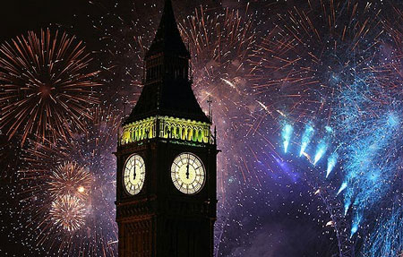Pháo hoa rực sáng trên Tháp Big Ben, London.