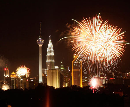 Pháo hoa thắp sáng bầu trời Kuala Lumpur, Malaysia.