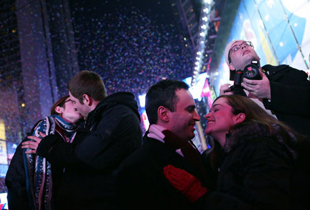 Tình yêu tràn ngập Quảng trường Thời đại vào ngày đầu năm mới.