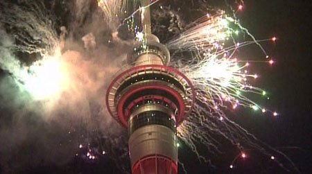New Zealand, vào 11h GMT, và chỉ 2 giờ sau là Australia đã khai màn cho lễ đón giao thừa với những màn trình diễn pháo hoa tuyệt đẹp. Khi đồng hồ chỉ đúng nửa đêm tại Auckland, thành phố lớn nhất New Zealand, pháo hoa đã được bắn lên từ trên đỉnh tòa tháp Sky cao 328m, tòa nhà cao thứ 15 của thế giới. Hàng chục ngàn người đã quy tụ quanh Vịnh Auckland để chiêm ngưỡng màn pháo hoa tuyệt đẹp có thể thấy ở khắp mọi nơi trong thành phố này.