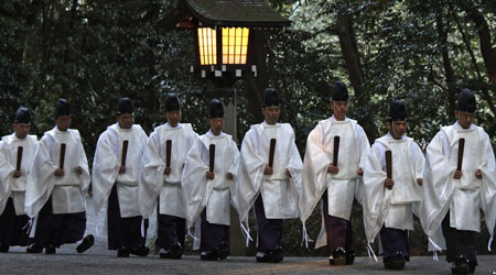 Tại Nhật Bản, các thầy tu dòng Shino tới ngôi đền Meiji tại Tokyo để thực hiện những nghi lễ năm mới.