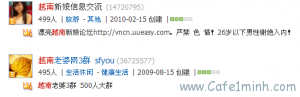 Dễ dàng tìm thấy các Room chat giới thiệu Tiếp tục tìm kiếm trên mạng, tôi tìm ra được “Hội những người cưới vợ Việt Nam”,“Hội giới thiệu cô dâu Việt Nam”, thậm chí tại địa chỉ http://vncn.uueasy.com/index-htm-m-area.html còn có hẳn một Site và 1 Forum bàn + hướng dẫn việc qua Việt Nam lấy vợ… Xem một hồi chỉ biết ngửa mặt lên mà than “Ôi ! Phong hóa suy đồi…” |
