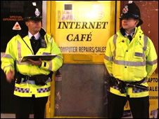 Cảnh sát Anh tại Manchester vây bắt nghi can khủng bố ở một quán cafe Internet hồi năm 2009.
