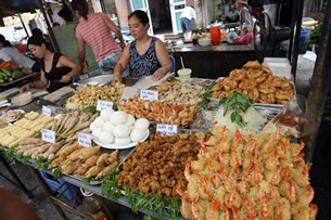 Thực phẩm ăn liền được bầy bán thoải mái. AFP Người dân Saigon tin rằng, gần đây vấn đề vệ sinh, an tòan thực phẩm có nhiều sự cải tiến, bà Liên cho biết: “Hột dưa được làm cho bóng nên cũng có chất độc hại, thì người ta không cho dân xài, về phần dân chúng thì cũng ý thức được điều đó rồi, chứ không như xưa, bạ đâu ăn đó. Vấn đề an tòan thực phẩm nay tương đối khá / Bà Liên, TPHCM “Về an toàn thực phẩm thì rất kỷ, nhưng đôi khi ở nơi khác, như từ Trung Quốc đưa vô, chỗ này chỗ nọ đưa qua thì cũng có. Ở đây, vào dịp cuối năm thì có kiểm tra an toàn thực phẩm nhiều lắm, nên cũng đỡ đi. Hột dưa được làm cho bóng nên cũng có chất độc hại, thì người ta không cho dân xài, về phần dân chúng thì cũng ý thức được điều đó rồi, chứ không như xưa, bạ đâu ăn đó. Vấn đề an tòan thực phẩm nay tương đối khá, có nghĩa là người ta kiểm tra rất chặt chẽ.”