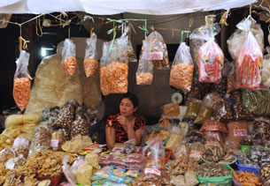 Một gian hàng bán mứt kẹo Tết. AFP Những vấn đề được nêu lên là việc sản xuất, chế biến không bảo đảm vệ sinh, nguyên liệu bị biến chất, không rõ nguồn gốc, cơ sở, dụng cụ không sạch sẻ. Mời quý vị nghe Đỗ Hiếu tổng hợp các thông tin có liên quan đến sức khỏe và túi tiền người tiêu dùng. Người tiêu dùng biết tin ai bây giờ? Tin tức do tờ Thanh Niên phổ biến cho biết, một khi khách hàng chứng kiến tận mắt công việc làm ra lạp xưởng thì chẳng ai dám thưởng thức món ăn khóai khẩu này nữa. Các bao chứa nguyên liệu bị biến chất, bốc mùi hôi tanh nồng nặc, các loại mỡ, thịt, cá, gà, ruột, gân, nằm ngổn ngang trên sàn nhà nhầy nhụa. Theo báo Saigon Giải Phóng thì tại một cơ sở khác, nhân viên kiểm tra niêm phong trên 500 chai sâm dứa có dấu vết bị nấm mốc và nhiễm vi khuẩn. Mặt khác, Sở Y tế thành phố Hồ Chí Minh phát hiện ba mẫu hạt dưa, ớt bột chứa Rhodamine B, là hóa chất có thể gây ra bệnh ung thư. “Một khi khách hàng chứng kiến tận mắt công việc làm ra lạp xưởng thì chẳng ai dám thưởng thức món ăn khóai khẩu này nữa. Các bao chứa nguyên liệu bị biến chất, bốc mùi hôi tanh nồng nặc, các loại mỡ, thịt, cá, gà, ruột, gân, nằm ngổn ngang trên sàn nhà nhầy nhụa.