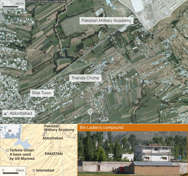 Hình chụp từ trên không khu vực có nhà của Osama Bin Laden |