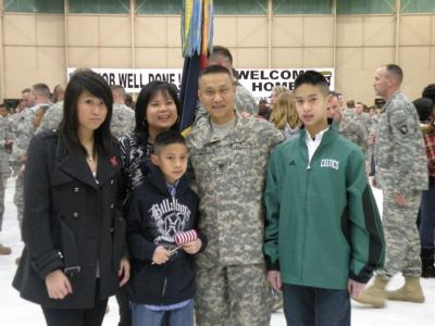 Từ trái sang phải Lương Thị Thu Diễm Asley, con gái đầu lòng, bà Kim Mỹ Lương, phu nhân, Lương Xuân Quốc, contrai út Justin, Đại tá Lưong Xuên Việt và contrai lớn, Lương Xuân Huy Brandon.trong niềm vui của ngày về từ chiến trường A Phú Hãn vào đầu tháng 3, 2011 vừa qua sau 13 tháng chiến đấu với những chiến công vang dội.
