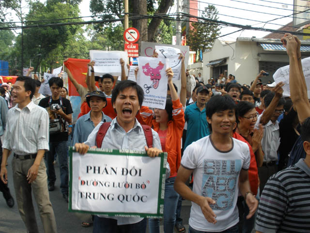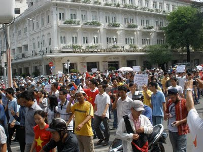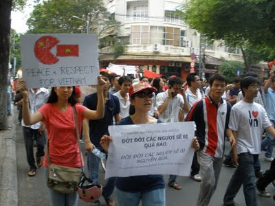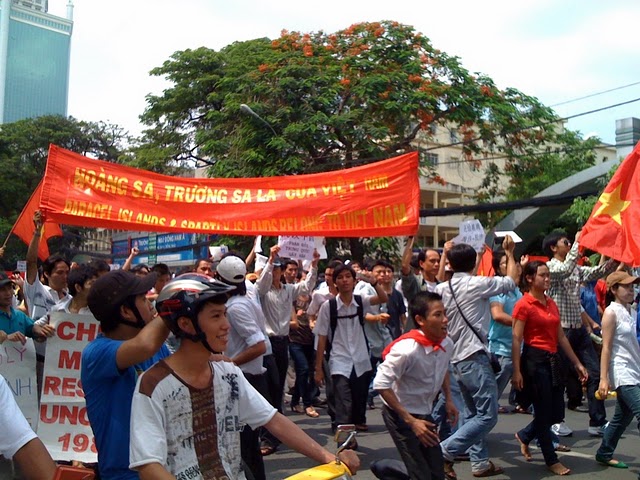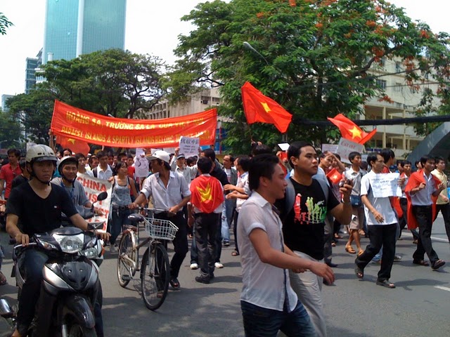 - Sài Gòn : Ít nhất 3000 người đang tuần hành, chật kín đoạn đường Hàn Thuyên và bên hông nhà thờ Đức Bà. Đoàn người đang tiếp tục tuần hành quanh khu vực Lãnh sự quán Trung Quốc