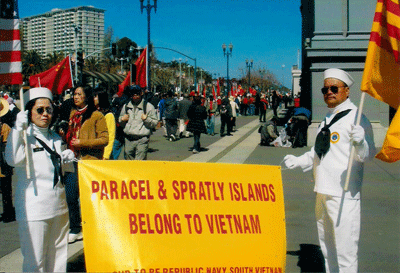 Vợ chồng Hoàng Sinh cũng rong ruỗi lên đường, đến với đám đông, mặc quân phục Hải Quân VNCH, mang theo cờ Mỹ và VNCH, hô hào: “Trường Sa-Hoàng Sa là của Việt Nam.”