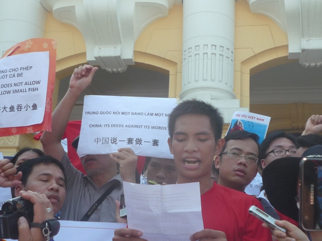 CỦA NHÂN DÂN VIỆT NAM YÊU NƯỚC GỬI NHÀ CẦM QUYỀN TRUNG QUỐC PHẢN ĐỐI HÀNH ĐỘNG XÂM PHẠM NGHIÊM TRỌNG CHỦ QUYỀN Hôm nay, tại trung tâm thủ đô Hà Nội của nước Việt Nam ngàn năm văn hiến, chúng tôi, những người tham gia biểu tình đại diện cho hàng triệu người dân Việt Nam yêu nước ở trong và ngoài nước cùng gửi tới nhà cầm quyền Trung Quốc tuyên bố như sau: - Cực lực lên án và tố cáo trước dư luận trong nước và quốc tế việc nhà cầm quyền Trung Quốc đã nổ súng và chiếm đóng phi pháp quần đảo Hoàng Sa của Việt Nam trong các năm từ 1956 đến 1974 cũng như 9 đảo ở Trường Sa của Việt Nam trong các năm từ 1988 đến 1992. Phản đối! (sau đó mọi người hô theo 2 lần: Phản đối, Phản đối). - Cực lực lên án và phản đối nhà cầm quyền Trung Quốc liên tục có những hành động gây hấn nhằm xâm chiếm Biển Đông, liên tục bắt bớ cướp bóc, phá hoại tàu bè của ngư dân Việt Nam; cắt cáp tàu thăm dò dầu khí của Việt Nam với ý đồ biến vùng đặc quyền kinh tế, vùng biển của Việt Nam thành vùng tranh chấp để hưởng lợi; diễn tập quân sự, điều tàu chiến lớn đến Biển Đông, đe dọa hòa bình an ninh trong khu vực. Phản đối! (sau đó mọi người hô theo 2 lần: Phản đối, Phản đối). - Kiên quyết phản đối tuyên bố chủ quyền đường lưỡi bò 9 đoạn phi pháp của Trung Quốc. Tuyên bố đó không dựa trên bất cứ luận điểm công pháp quốc tế nào, vi phạm nghiêm trọng Luật Biển và Công ước về Luật Biển (UNCLOS) của Liên Hiệp Quốc mà Trung Quốc đã ký năm 1982 cũng như vi phạm tuyên bố về ứng xử trên Biển Đông (DOC) mà Trung Quốc và ASEAN đã ký năm 2002. Phản đối! (sau đó mọi người hô theo 2 lần: Phản đối, Phản đối). - Kiên quyết phản đối những phát ngôn mang tính đe dọa và việc tuyên truyền đặt điều, xuyên tạc sự thật của nhà cầm quyền Trung Quốc đối với Việt Nam. Phản đối! (sau đó mọi người hô theo 2 lần: Phản đối, Phản đối). Chúng tôi, những người dân yêu nước Việt Nam quyết tâm làm tất cả, nguyện đem tất cả sức mình để chống lại các hành động xâm lấn hiếu chiến của nhà cầm quyền Trung Quốc, bảo vệ vững chắc chủ quyền đất, biển, đảo của Việt Nam. Đất nước Việ t Nam muôn năm! (sau đó mọi người hô theo 2 lần: muôn năm) CHÙM ẢNH CỦA NGUYỄN XUÂN DIỆN GHI LẠI NHỮNG