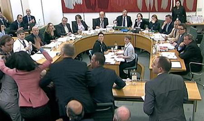 Hôm Thứ Ba 19 tháng 7, Rupert Murdoch và một người con trai phải ra điều trần trước  ủy ban điều tra đặc biệt của Quốc hội Anh . Bà vợ Wendi Deng đi theo, ngồi ở hàng ghế phía sau lưng chỉ với tính cách quan sát. Nhưng khi bất ngờ một thanh niên cầm chiếc đĩa đựng một chất như kem bánh ngọt hoặc bọt cạo râu (foam) nhào tới phía Murdoch, Wendi là người duy nhất có phản ứng kịp thời và dứt khoát, ngăn chặn hành động như một vệ sĩ chuyên nghiệp.