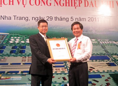 Ông Nguyễn Trọng Hòa (phải), cựu chủ tịch tỉnh Khánh Hòa bị tai tiếng vụ tham nhũng Rusalka - Nàng Tiên Cá, được đích thân Thủ Tướng Nguyễn Tấn Dũng cứu và cho hạ cánh an toàn làm trưởng ban quản lý Khu Kinh Tế Vân Phong, theo chính lời ông Hòa nói với tổng lãnh sự Mỹ. (Hình: congthuongkhanhhoa.gov.vn)