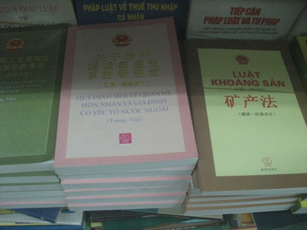 Quốc hội kỳ này sẽ thông qua 5 dự án luật và 1 nghị quyết, cho ý kiến 12 dự án Luật, trong đó có Luật biển Việt Nam. Các dự án luật nói trên khi Quốc hội Việt Nam kỳ này thông qua xong rồi chẳng hiểu sẽ được cơ quan, tổ chức nào lại “chịu trách nhiệm xuất bản” bằng chữ Tàu để phục vụ cho “bọn Tư bản Đỏ – nước Lạ” đọc và áp dụng trên Tổ quốc hình chữ S này (?!) Thấy không bình thường ở một số hiệu sách tại Hà Nội đang bày bán một số văn bản luật hiện hành điều chỉnh một số nhóm “quan hệ pháp luật nhạy cảm” như: Luật Đấu thầu; Luật đầu tư; Luật xây dựng; Luật đất đai; Luật kinh doanh bất động sản; Luật khoáng sản; Luật chứng khoán; Luật thuế tiêu thụ đặc biệt; Luật chuyển giao công nghệ…; Và cả Quy định mới về quan hệ hôn nhân và gia đình có yếu tố nước ngoài, đều được Nhà xuất bản Thế Giới có địa chỉ tại 46 Trần Hưng Đạo (Hà Nội), do ông Trần Đoàn Lâm chịu trách nhiệm xuất bản hàng loạt bằng chữ Trung Quốc (trước), rồi dịch ra chữ Việt Nam (sau) !!! Thật lạ, “Luật ta” nhưng tại sao Nhà xuất bản Thế Giới lại phải in bằng chữ Trung Quốc trước nhằm “biến chủ thành khách” và liệu rằng có ai đó hoặc tổ chức nào chỉ đạo việc in ấn “chữ lạ” này chăng? Trước sự kiện pháp lý “tày đình” này, tôi (360luatphap) với tư cách là cử tri kiến nghị với “500 ông Nghị” đại diện cho “đỉnh cao trí tuệ” do Đảng CSVN cử – dân bầu, thử đọc (các văn bản pháp luật – xem ảnh) và dịch “thương hiệu” của Đảng ta đặt 8 chữ “Cộng hòa xã hội chủ nghĩa Việt Nam” sang chữ Trung Quốc xem là mấy chữ (?!). Trong Luật kinh doanh bất động sản (và các luật nêu trên), “thương hiệu” tên nước của Đảng ta được Nhà xuất bản Thế Giới dịch thành 9 chữ Tàu, trong đó chữ thứ 9 được chuyển ngữ sang tiếng Việt là chữ: “Quốc”. Nếu “500 ông Nghị” khả kính của Đảng ta mà botay.com, thì đành thỉnh nghị ông Tiến sỹ (Hán nôm) Nguyễn Xuân Diện đọc các luật trên dịch “chữ lạ” và loan tin cho toàn thiên hạ cùng… rõ!