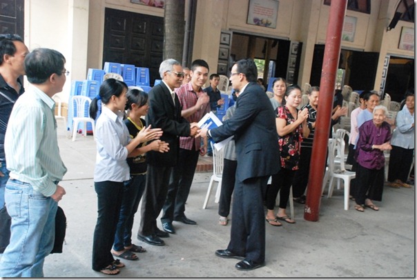 Sau cuộc trò chuyện, gặp gỡ các linhmục tu sĩ Dòng Chúa Cứu Thế, ông đi bắt tay từng người để diễn tả sự cảm thông với những nỗi đau của anh chị em giáo xứ Thái Hà đang phải gánh chịu.