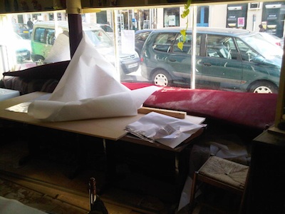 Bốn giờ sau, khi Foyer được Cảnh sát giải tỏa, người nào có dịp bước vào Quán, đứng từ phía quầy thu tiền, nhìn bao quát hai gian phòng ăn theo hình chữ L, sẽ không thể nào nhận ra quán ăn quen thuộc vì tất cả đã đảo lộn, tung tóe. Nhân viên của Quán đi bới xốc trong đống ngỗn ngang để tìm lại đồ đạt của mình. Hai cái máy PC xách tay (laptop) biến mất. Một cái laptop thứ ba cũng biến mất, cùng với hồ sơ, tư liệu của nhà báo Hồ Nhật Thảo ở Đài TV Quảng Ngãi. Và một chiếc máy nữa chứa đựng hồ sơ kinh doanh của ông Hồ Nhật Chung cũng mất. Nhưng sau đó, mấy chiếc máy PC đều tìm lại được. Tất cả được gói lại để trong đống đồ vật ngổn ngang. Duy có ông Hồ Nhật Thảo bị mất 600 euros mà ông nhận lời cầm về cho một người ở Đà Nẵng.