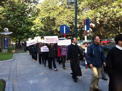 Hai tuần trước, ngày 18 tháng 11 năm 2011, hàng trăm giáo dân và tu sĩ Thái Hà đã biểu tình tuần hành trên đường phố Hà Nội với biểu ngữ đòi lại tài sản cho giáo xứ và Dòng Chúa Cứu Thế.