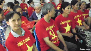 Hàng trăm người dân Hà Đông mặc áo đỏ đã đi biểu tình ở trung tâm Hà Nội để đòi lại đất đai trong đó có cả đất họ nói được 'Bác Hồ' giao từ những năm 1960.
