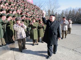 Kim Jong-Un viếng một đơn vị quân đội . Ảnh do KCNA công bố ngày 08/02/2012.