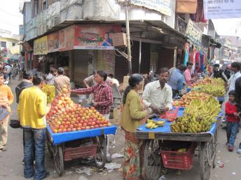 Cảnh chợ búa ở một khu nửa nông thôn, nửa thành thị ở bang Uttar Pradesh (Ấn Độ). Ảnh chụp năm 2009.