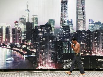 Chi phí cao khiến nhiều doanh nghiệp nước ngoài muốn rời Trung Quốc. Trong ảnh : một công nhân đi dạo cạnh một khu phố lớn của Thượng Hải, 13/07/2012