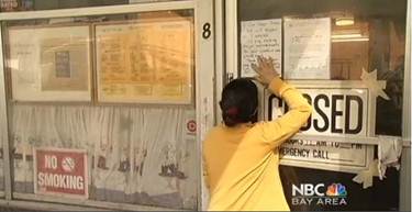 Một khách hàng đang đọc thông báo đóng cửa tại nhà hàng Tu Lan(Ảnh cắt từ video). Photo courtesy: NBC BAY AREA