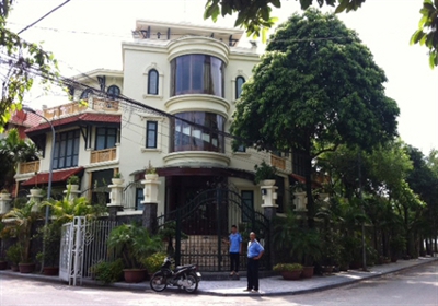 Ngôi biệt thự của ông Nguyễn Ðức Kiên tại Hà Nội, nơi ông bị bắt, xét nhà, tịch thu một số tài liệu. (Hình: Báo Lao Ðộng)